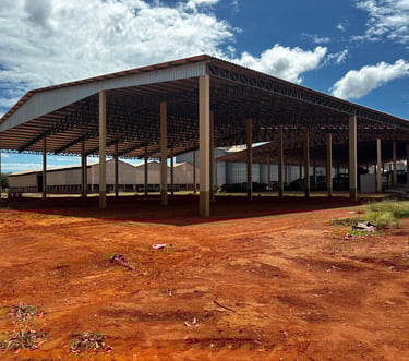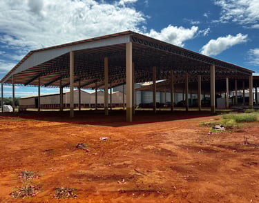 Barracão industrial, pórtico, cobertura e ampliação industrial.